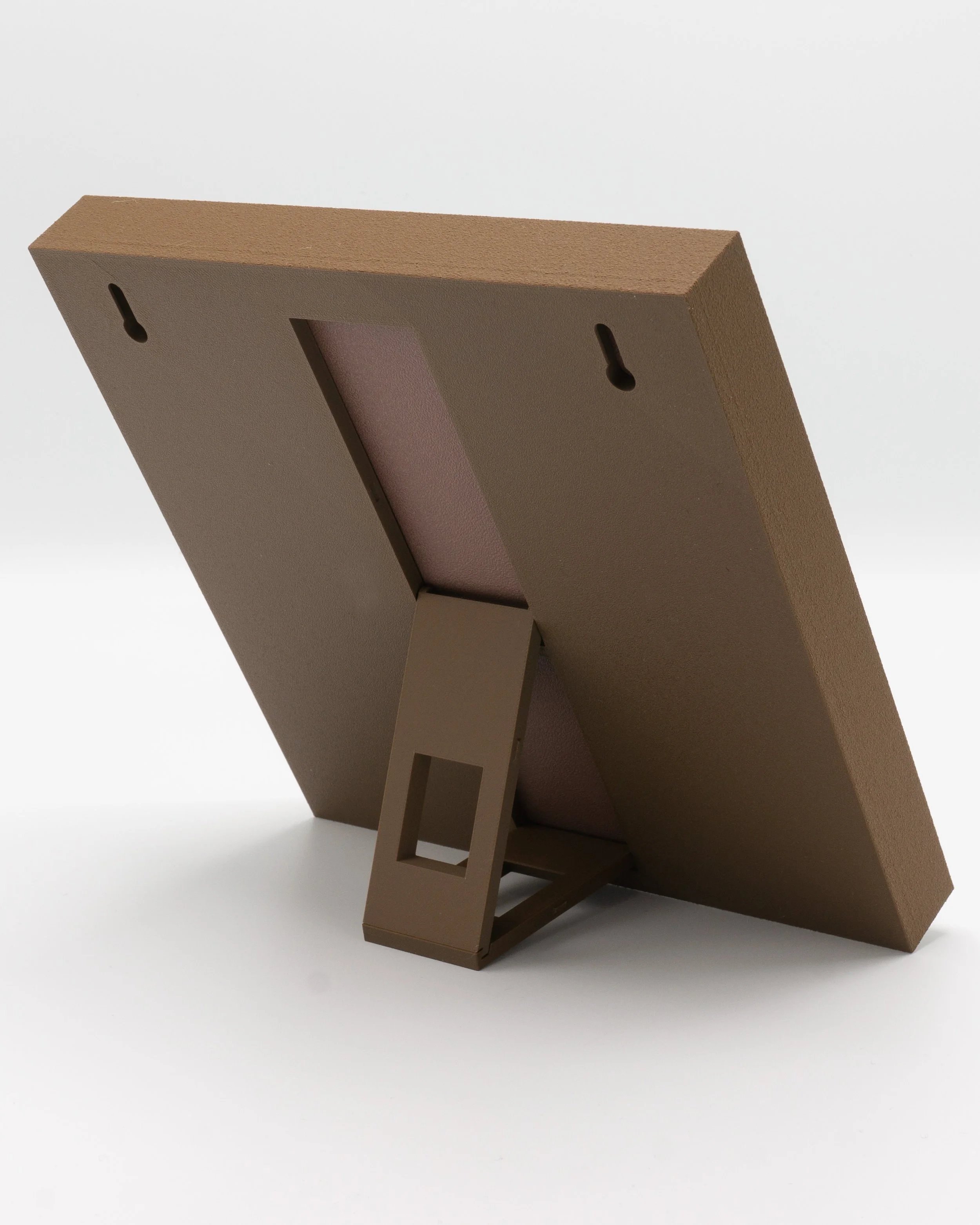 - Frame is 3D printed from PLA Wood filament containing a real wood powder