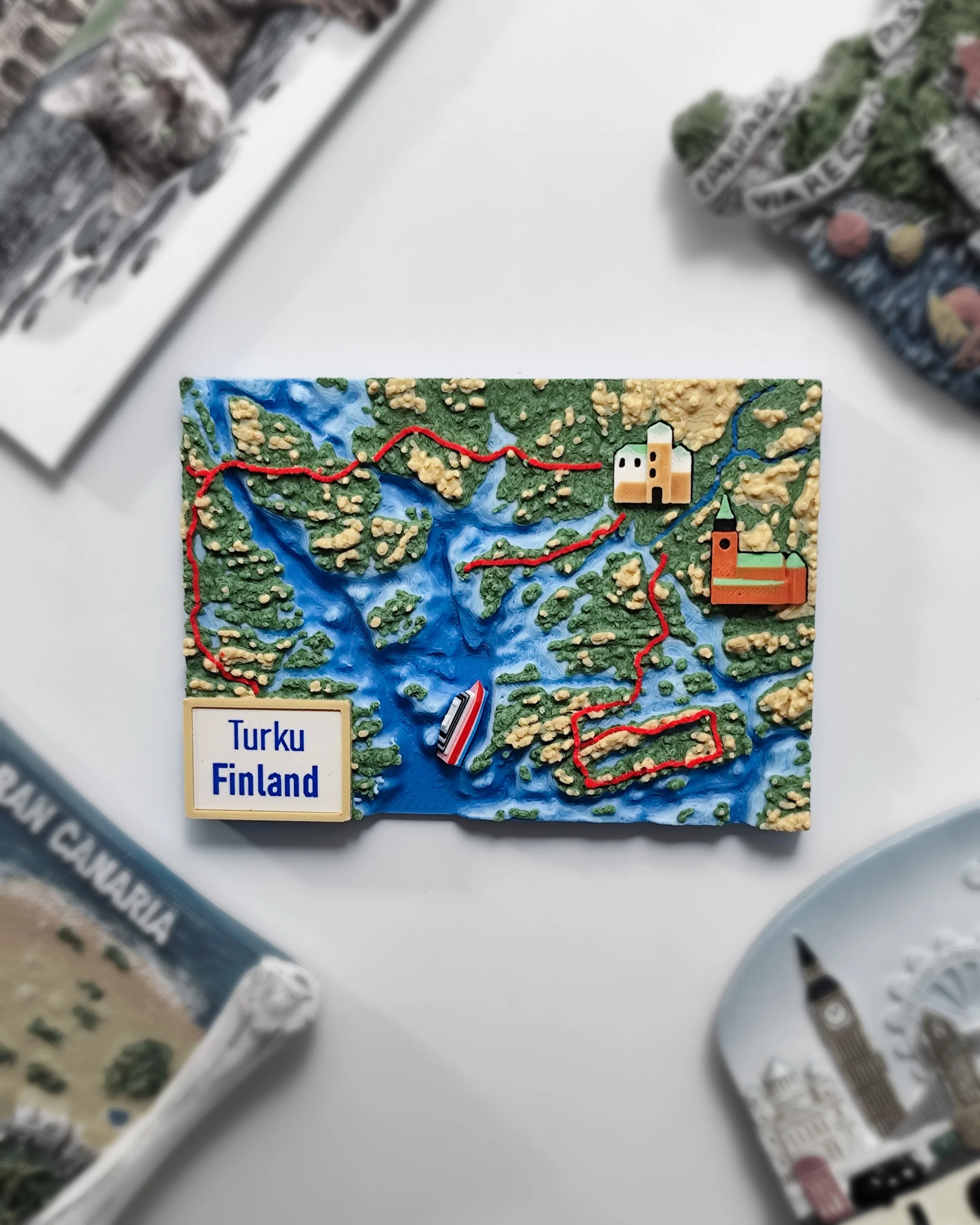 - Landmarks (Turku Castle, Turku Cathedral, Aura river, Vähäjoki river, and a cruise ferry)